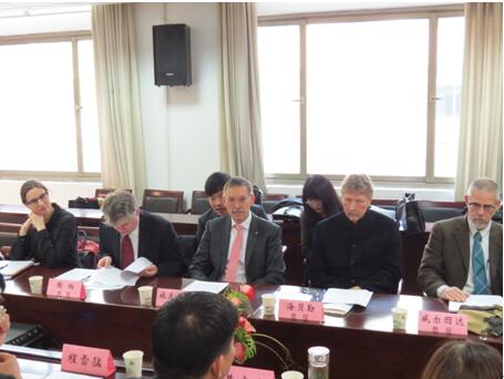 国际交流部部长程雪猛教授、外语学院党委书记黄宏发教授、国际教育学院院长胡焰初教授、国际交流部副部长罗安娜博士、文学院副院长于亭教授、外语学院副院长刘军平教授、法语系系主任吴鸿渺教授、德语系系主任包向飞教授、外语学院英文系副主任黄忠副教授、法国巴黎七大孔子学院中方院长周汉斌教授、德国鲁尔都市孔子学院中方院长刘靓副教授、阿伯丁大学孔子学院中方院长张国庆教授、孔院事务综合办公室负责人朱本琳女士等;出席会议的外方代表包括:杜伊斯堡—埃森大学副校长Thomas Michael Spitzley教授、鲁尔都市孔子学院德方院长Thomas Heberer教授和Markus Taube教授、鲁尔都市孔院执行院长Susanne Löhr、阿伯丁大学副校长的代表Claire Hargade女士、阿伯丁大学孔子学院英方院长Will Tuladhar-Douglas教授。
