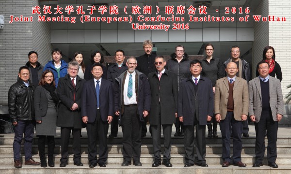 孔子学院(欧洲)联席会议结束后,各位中外方代表在外语学院大门前阶梯进行合影留念。