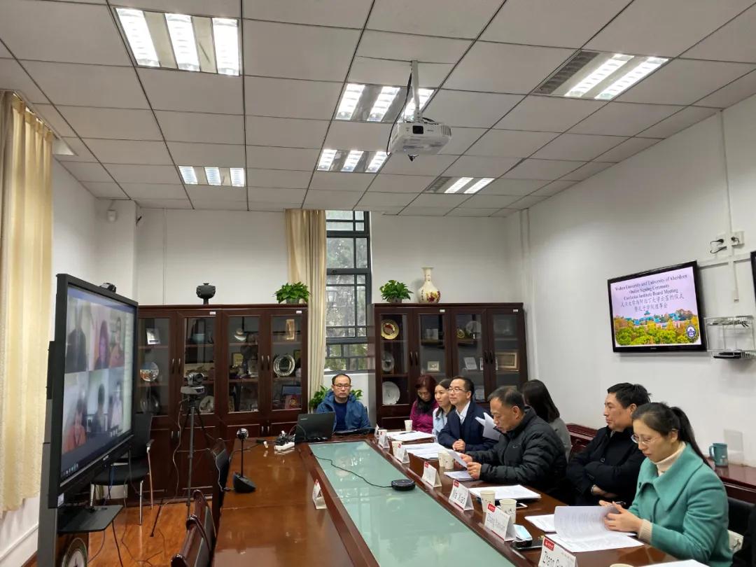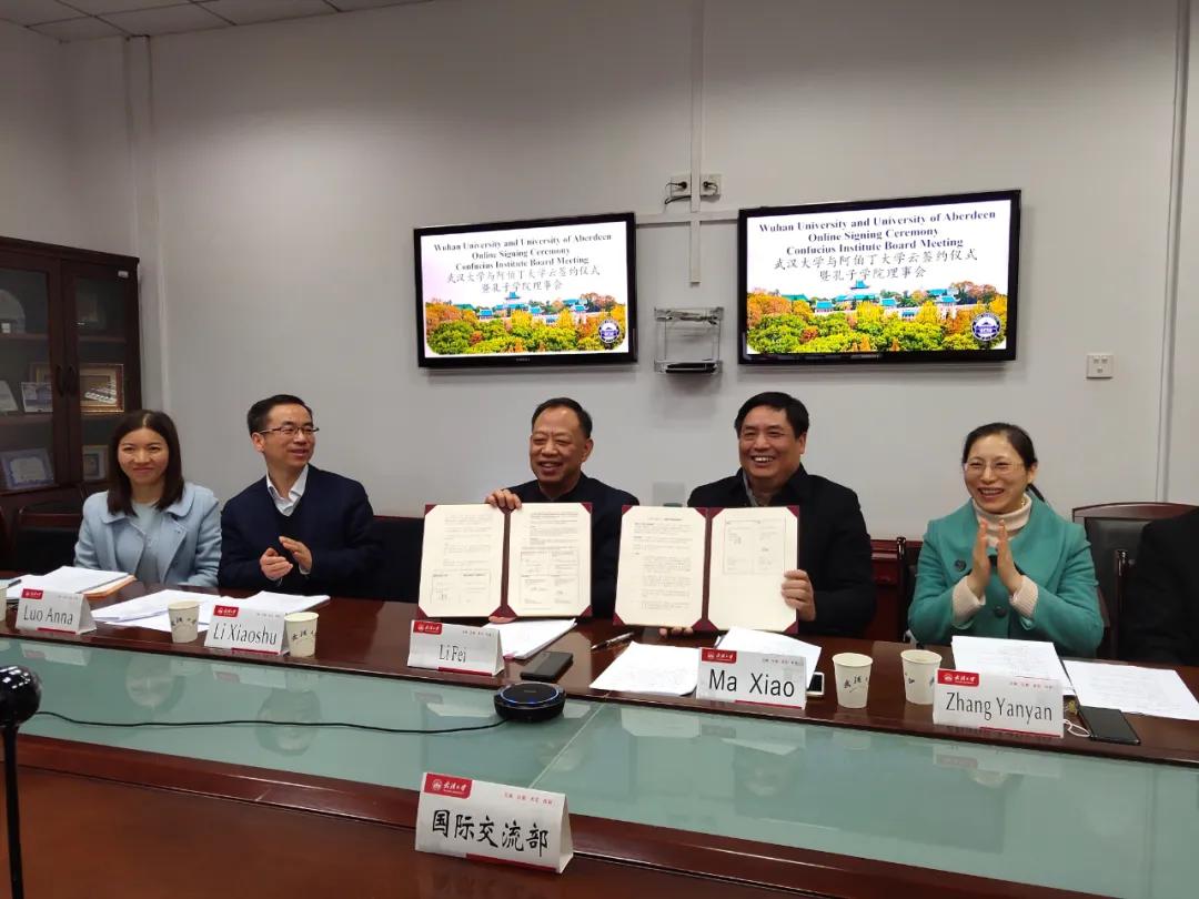 2020年12月16日下午,我校与英国阿伯丁大学举行云端会议,签署两校翻译学硕士联合培养项目协议及孔子学院合作续签协议,并召开阿伯丁大学孔子学院2020年度理事会会议。副校长李斐出席会议并致辞。无码流出 、哲学学院和国际交流部的相关负责人参加会议。