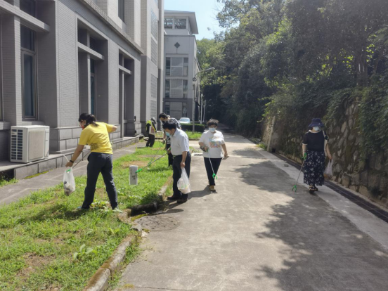 支部为每位党员配备了垃圾夹、垃圾袋等工具,要求重点对大楼外围的草坪、树下、沟坎等处不易发现的塑料、纸张、难以降解的物品等进行检视清理,争取让外院的环境更整洁,视觉体验更好。
