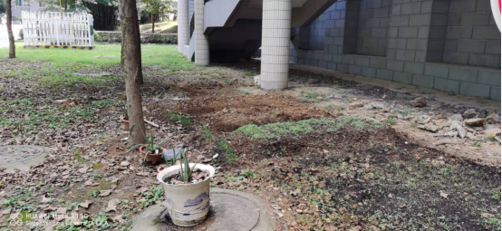 行至外院车库,卫生问题较严重。一、车库左手,池杉树下,有一个“烟头集散地”,胡谷明和黄清华老师共收集了30余个烟头。二、车库右手,有人开辟了菜地。三、变压器附近草丛里散落了很多聚乙烯碎片,典型白色污染。靠近墙边也有不少白色垃圾。大家费时十余分钟才捡拾完毕。