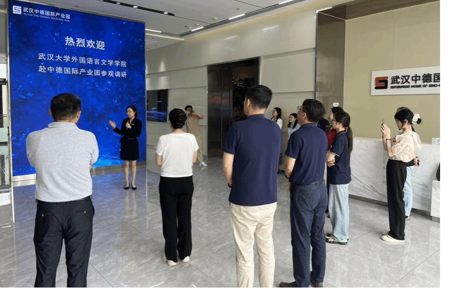 党委副书记周翠芳、德语系主任徐琼星、德语系副主任张申威、研究生辅导员宋皓瑜、研究生兼职辅导员林玉红、郑宁祺一行前往武汉中德国际产业园企业之家参观调研,并就共建日、俄、德、法、英等外语人才实习基地、提供多语种社会服务、产学研合作等进行座谈交流。蔡甸经济开发区区委常委、统战部长、蔡甸经济开发区(奓山街道)党工委书记许永周、奓山街道办事处副主任杨园、招商(投资促进)办公室负责人张苗、招商(投资促进)办公室工作人员薛志娇、何正威、普旭集团武汉公司总经理吴飞、博格华纳汽车零部件(武汉)有限公司人力资源经理杨慧、武汉日特固汽车零部件有限公司行政负责人彭颂、佛吉亚(武汉)汽车部件系统有限公司人力资源经理连伟华等武汉中德国际产业园有关企业代表出席座谈会。