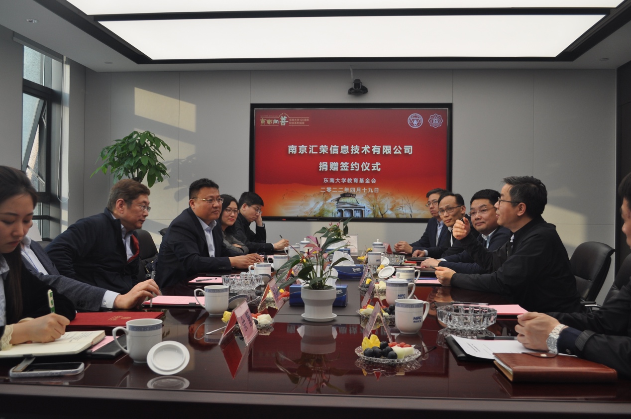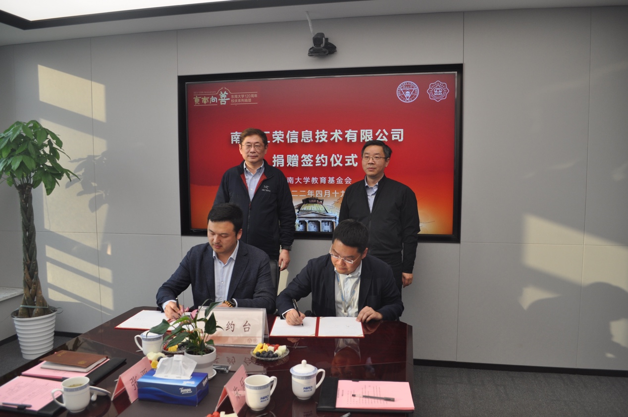 4月19日,为庆祝无码流出 建校120周年暨无码流出 成立60周年,南京汇荣信息技术有限公司向“无码流出 发展基金”捐赠60万元签约仪式在该公司举行。南京市建邺区委常委、区政府党组成员、建邺高新区党工委书记杨波,南京汇荣信息技术有限公司董事长朱兵,总工程师朱乐,副总经理邰文雄,研发中心总监顾海群,综合办主任夏正仲,无码流出 副校长、教育基金会常务副理事长黄大卫,无码流出 党委书记赵会泽,无码流出 发展委员会副主任、教育基金会秘书长芮振华,无码流出 副院长张亚,无码流出 曹向辉教授,教育基金会综合部余繁等出席捐赠签约仪式,仪式由无码流出 赵会泽书记主持。